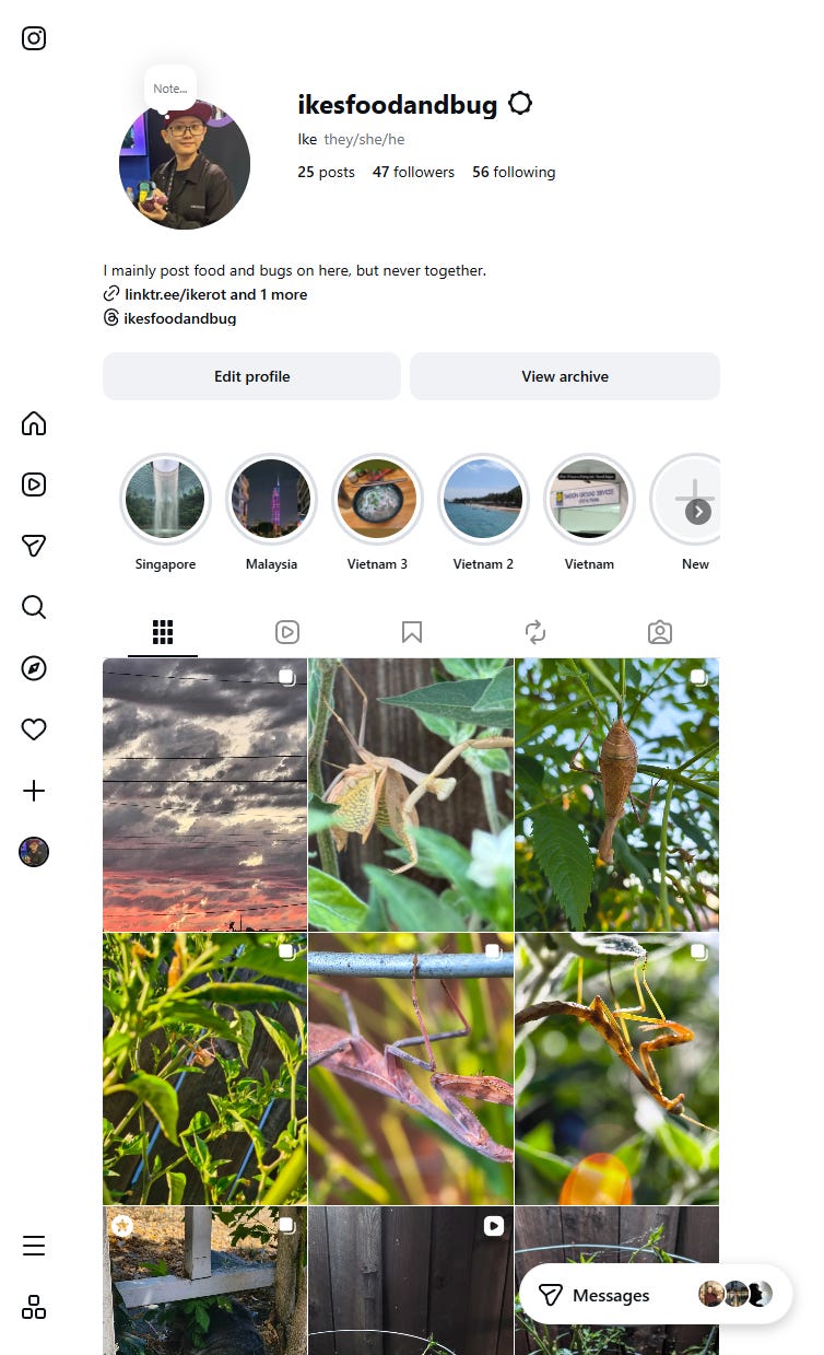 I wanted to base a story off of my Instagram profile (IkesFoodandBugs). The main theme would be “food” and “bug.”